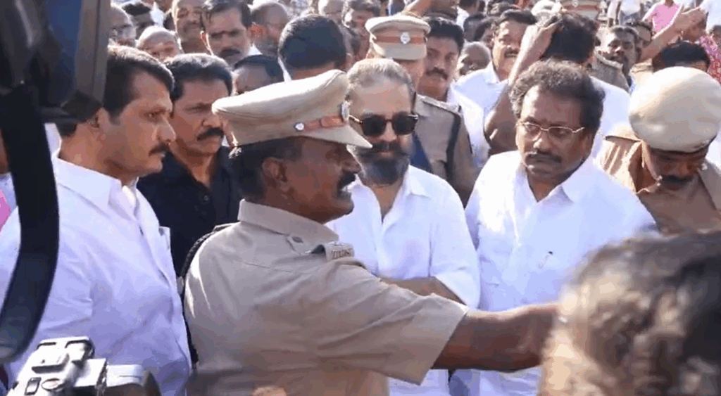 இந்த நிலையில் மக்கள் நீதி மய்யம் கட்சித் தலைவரும், எம்.பியுமான கமல்ஹாசன் இன்று கரூர் சென்றார். அவரை வரவேற்க மநீம கட்சியைச் சேர்ந்தவர்கள் சுமார் நூறு பேர் அப்பகுதியில் கூடியிருந்தனர்.