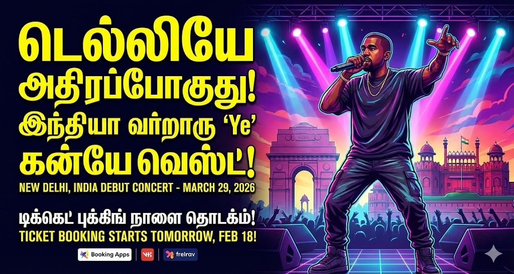 “இசையில ஜாதி, மதம், மொழி எல்லைகள் கிடையாது பாஸ்!” கன்யே வெஸ்டின் அந்த அதிரடி இசைக்குத் தலைவணங்க டெல்லி தயார். நீங்க டிக்கெட் புக் பண்ணத் தயாரா? நாளைக்கு உங்க போன், லேப்டாப் எல்லாத்தையும் சார்ஜ் போட்டு வைங்க… ஏன்னா இது ‘நெருப்பு’ மாதிரி வித்துத் தீரப்போகிற ஒரு ‘மெகா’ ஈவென்ட்!