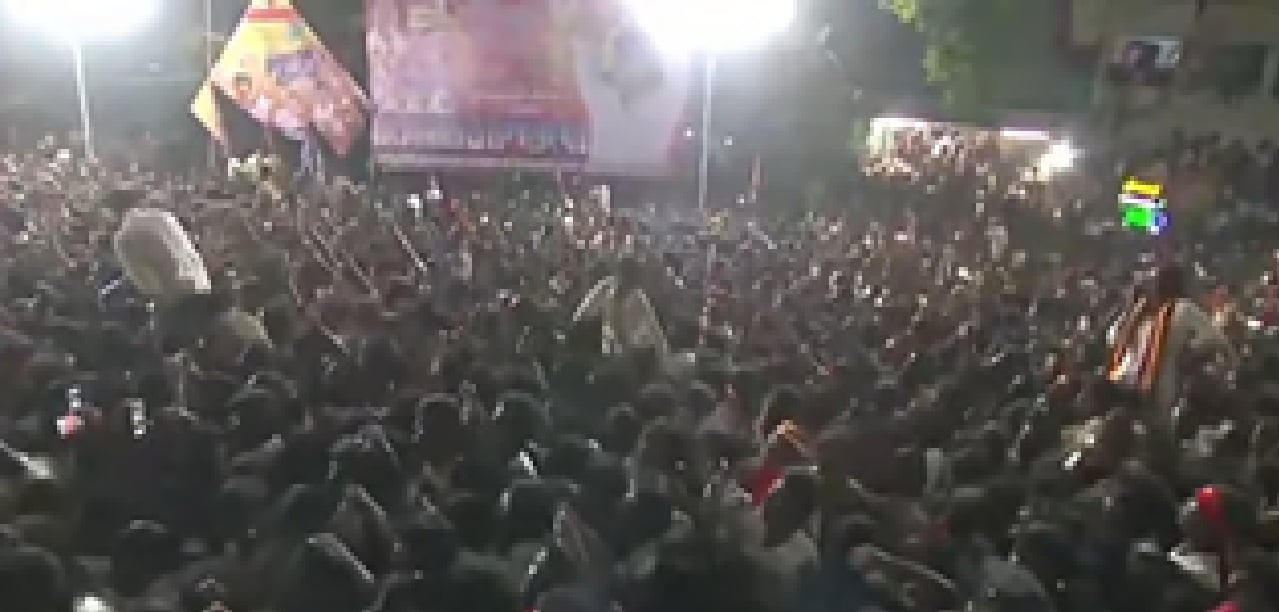 4,5 பேர் ஓரிடத்தில் மயங்கி கிடக்க பேருந்தின் மேல் இருந்து விஜய் தனது பேச்சை தொடர்வது அந்த வீடியோவில் பதிவாகியுள்ளது.