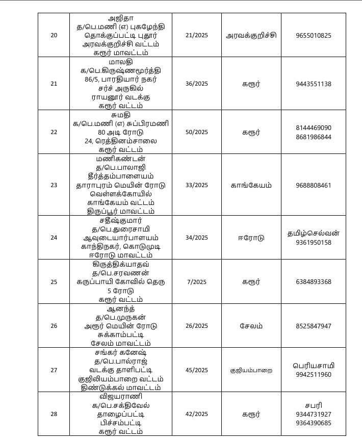 கரூரில் தவெக தலைவர் விஜய் பரப்புரையின் போது நேற்று (செப்டம்பர் 27) நடந்த கூட்ட நெரிசலில் சிக்கி இதுவரை 40 பேர் உயிரிழந்துள்ளனர். மேலும் 50க்கும் மேற்பட்டோர் சிகிச்சை பெற்று வருகின்றனர். உயிரிழந்தவர்களின் உறவினர் கதறும் காட்சிகள் காண்போதை பதற வைக்கும் நிலையில் உயிரிழந்தவர்களின் விபரங்கள் குறித்த தகவல்கள் வெளியாகி உள்ளது.