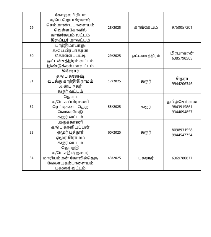 உயிரிழந்வர்களில் 34 பேரின் விபரங்கள் வெளியிடப்பட்டுள்ளது. இதில் 27 பேர் கரூர் மாவட்டத்தை சேர்ந்தவர்கள். ஒரே குடும்பத்தை சேர்ந்த 3 பேர் உயிரிழந்துள்ளனர். கரூர் விஸ்வநாத புரத்தை சேர்ந்து ஹேமலதா என்ற தாயும், கரூர் தனியார் பள்ளியில் பயிலும் அவரது குழந்தைகளான சாய் லக்ஷனா, சாய் ஜீவா ஆகியோரும் உயிரிழந்தனர்.