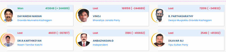 மக்களவைத் தேர்தலில் பதிவான வாக்குகள் ஜூன் 4ஆம் தேதி எண்ணப்பட்டன. இந்த தேர்தல் முடிவில் திமுக கூட்டணி தமிழ்நாடு புதுச்சேரியில் 40க்கு 40 தொகுதியில் வெற்றி பெற்றிருக்கிறது.