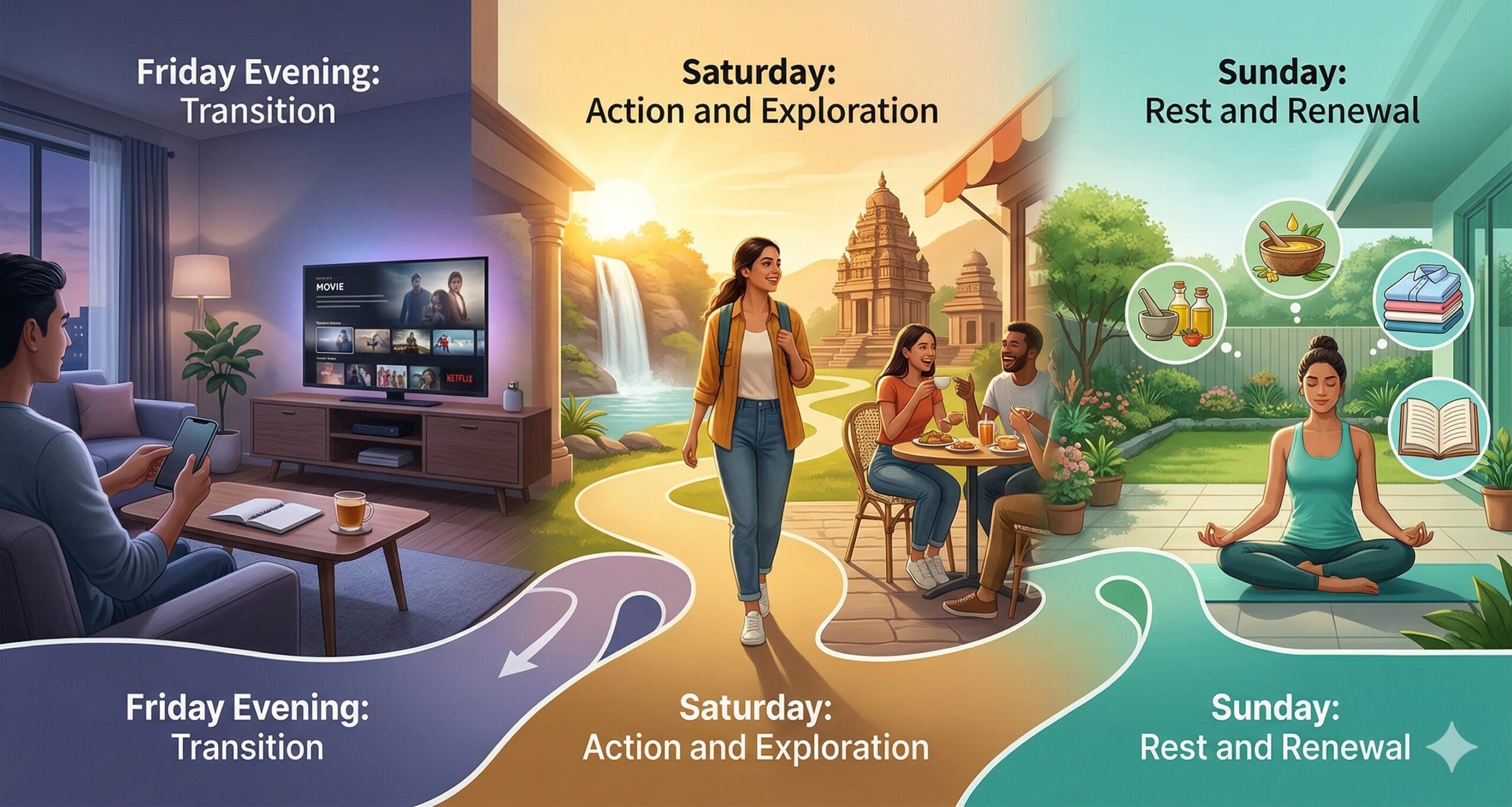 இன்று ஏப்ரல் 3, வெள்ளிக்கிழமை. இன்று தொடங்கி ஞாயிற்றுக்கிழமை வரை நமக்கு ஒரு நீண்ட வார இறுதி (Long Weekend) கிடைத்துள்ளது. அலுவலக வேலைகள், அன்றாட நெருக்கடிகள் என அனைத்தையும் ஓரம் கட்டி வைத்துவிட்டு, இந்த மூன்று நாட்களை எப்படி பயனுள்ளதாகவும் மகிழ்ச்சியாகவும் மாற்றலாம் என்பதற்கான சில யோசனைகள் இதோ!