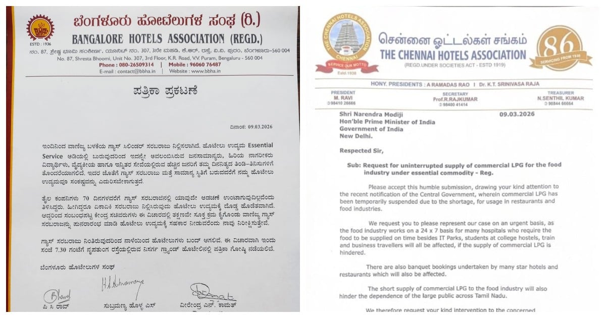 வணிக பயன்பாட்டு சிலிண்டர் தட்டுப்பாடு காரணமாக கர்நாடகா மாநிலம் பெங்களூரில் ஹோட்டல்கள் மூடப்பட்டுள்ளன. இதே போல சென்னையிலும் ஹோட்டல்கள் மூடப்படும் நெருக்கடி உருவாகி உள்ளது.