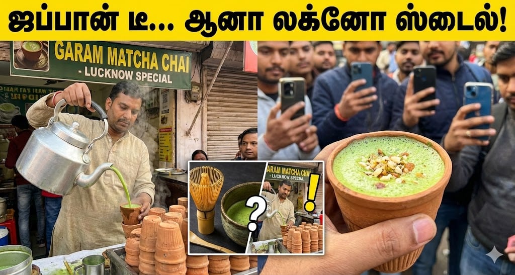 வழக்கமாக லக்னோ என்றாலே கபாப் மற்றும் பிரியாணிதான் நினைவுக்கு வரும். ஆனால், இப்போது ஒரு தெருவோரக் கடைக்காரர் ‘கரம் மட்சா டீ’ (Garam Matcha Chai) என்ற பெயரில், களிமண் குவளையில் (Kulhad) பச்சையாக ஒரு டீயை ஊற்றிக் கொடுக்கும் வீடியோ இன்ஸ்டாகிராமில் வைரலாகி வருகிறது.