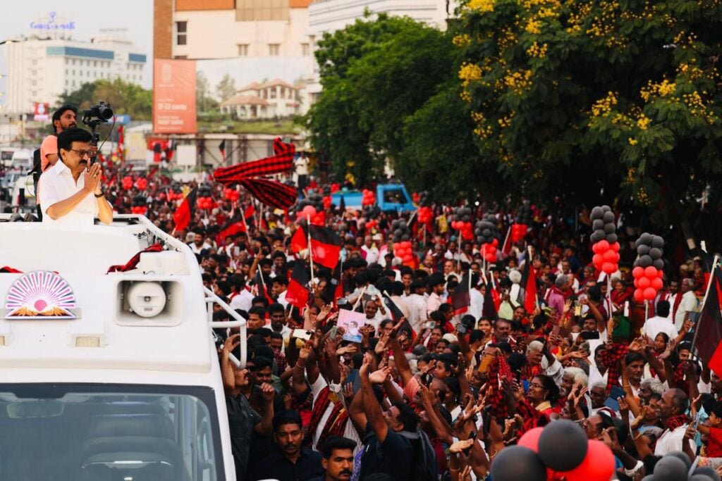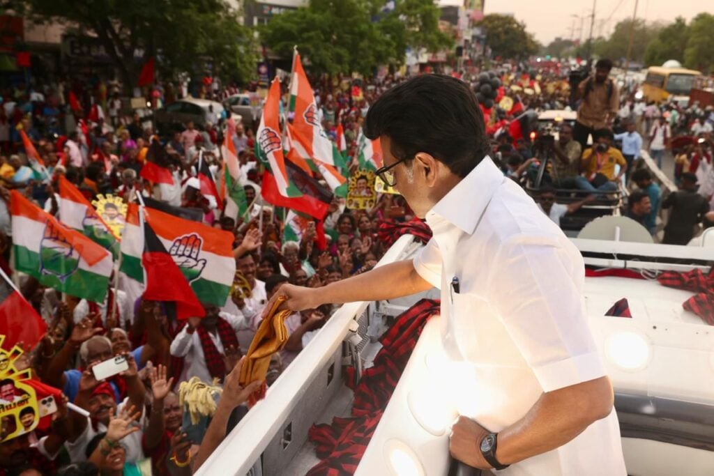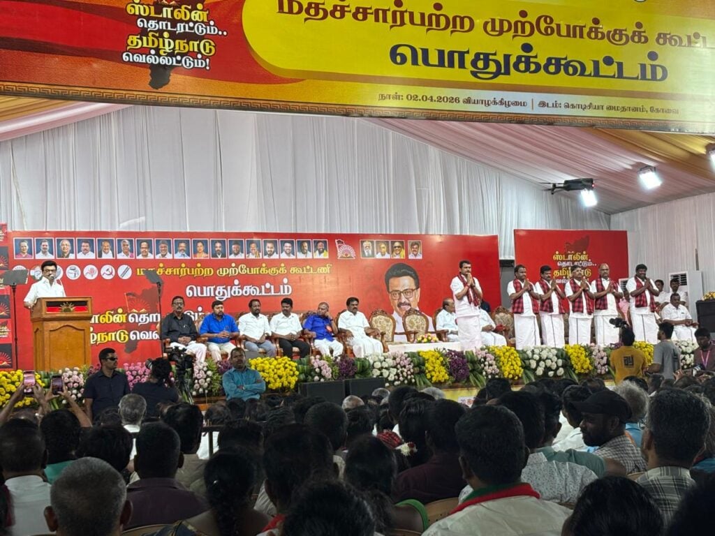 தமிழக முதல்வர் மு.க.ஸ்டாலின் இன்று (ஏப்ரல் 2) கோவையில் நடந்த தேர்தல் பிரச்சாரக் கூட்டத்தில் கலந்து கொண்டார்.