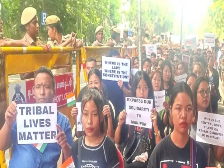 அந்த வகையில் சென்னையில் வாழும் குக்கி மக்கள் இணைந்து சென்னை எழும்பூர் ராஜரத்தினம் மைதானம் அருகே இன்று ஆர்ப்பாட்டத்தில் ஈடுபட்டனர்.