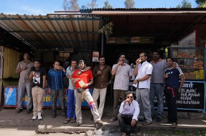 இப்படத்தின் ஆரம்பக் காட்சிகள் நமக்கு வெங்கட்பிரபுவின் ‘சென்னை 600028’ படத்தை உடனடியாக நினைவூட்டுகிறது. காரணம், அதேபோன்று இரண்டு டஜனுக்கும் மேற்பட்ட இளைஞர்கள் திரையை நிறைப்பதும், அவர்கள் ஒவ்வொருவரும் ஒரே பிரேமில் வெவ்வேறு செயல்பாடுகளில் ஈடுபடுவதாகக் காட்டப்படுவதும் தான். அந்த உத்தியே, பார்வையாளர்களான நாம் அந்த இடத்திற்கு நேரிடையாகச் சென்றது போன்ற ‘லைவ்’ உணர்வை உண்டாக்குகின்றன.