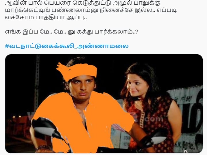 ஆவின் பாலோ அமுல் பாலோ.. தமிழ் நாட்டுல விக்கணும்னா நீங்க காவி பால் கலக்காமல் வாங்கோ ….