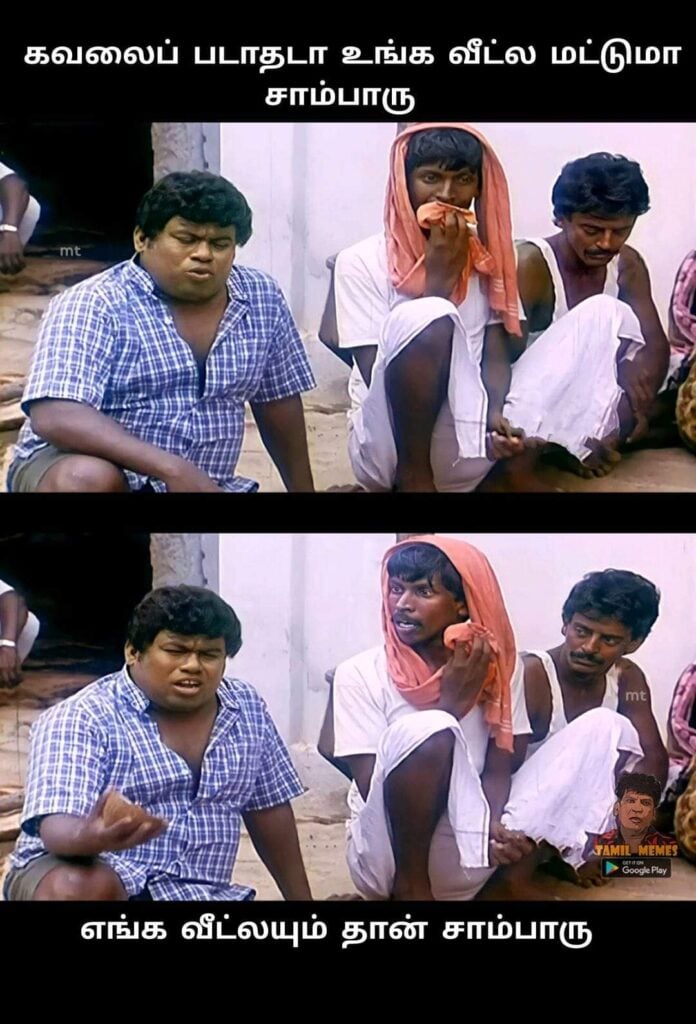 எல்லாரு வீட்டுலயும் சாம்பார் சாதத்த மட்டும் தான் வைக்குறானுங்க.. ஒருத்தராவது ரெண்டு வடை ‘ய சேத்து வைக்குறானுங்களா னு பாரு..