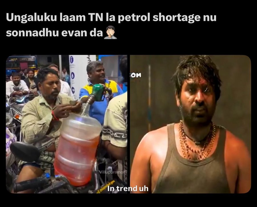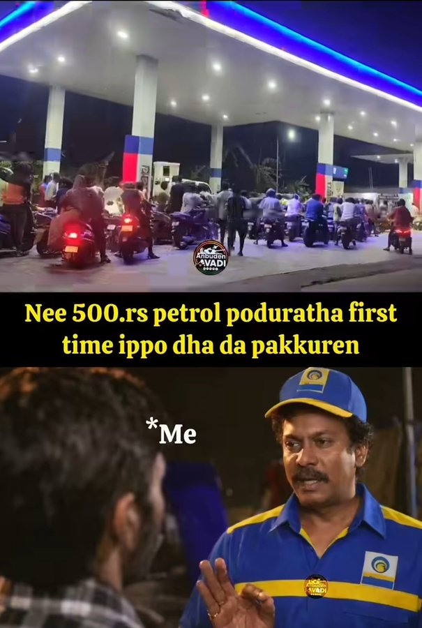 தேவையே இல்லாம எக்ஸ்ட்ரா பெட்ரோலை வாங்கி தட்டுப்பாடு ஏற்படுத்தறாம்ப்பா..