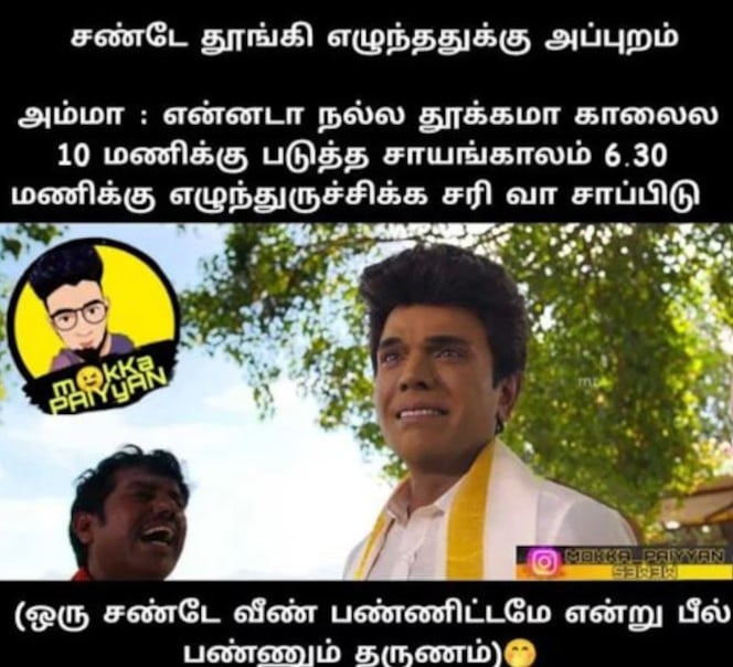 ஞாயிற்றுக்கிழமை னா என்ன பிளான் பண்ணுவ..