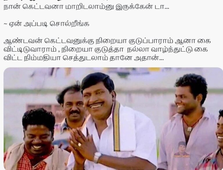 பொண்டாட்டி கிட்ட சண்டை வரமா இருந்தா ரசமும் சாம்பாராக இருக்கும் சண்ட வந்தா சாம்பாரும் ரசம் மாதிரி தான் இருக்கும்…!
