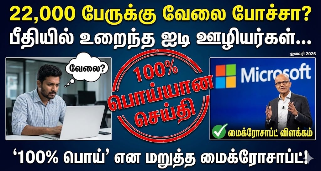 பரவிய வதந்தி என்ன? கடந்த சில நாட்களாகச் சமூக வலைதளங்கள் மற்றும் சில இணையதளங்களில் ஒரு செய்தி வைரலானது. அதன்படி, “மைக்ரோசாப்ட் நிறுவனம் தனது செலவுகளைக் குறைப்பதற்காக, ஜனவரி 2026-ல் சுமார் 11,000 முதல் 22,000 ஊழியர்களை ஒரே நேரத்தில் பணிநீக்கம் (Mass Layoffs) செய்யத் திட்டமிட்டுள்ளது” என்று கூறப்பட்டது. ஏற்கனவே உலகப் பொருளாதாரச் சூழல் மந்தமாக இருக்கும் நிலையில், இந்தச் செய்தி ஐடி ஊழியர்களிடையே பெரும் அச்சத்தை ஏற்படுத்தியது.
