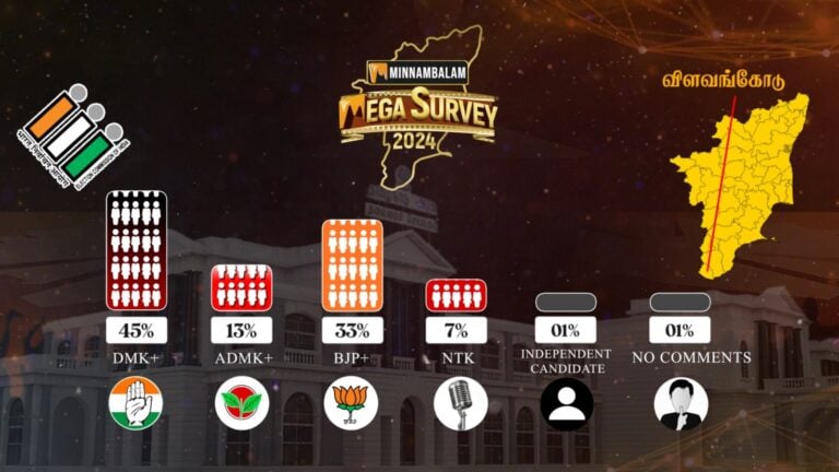 நான்கு முனை போட்டி நிலவும் விளவங்கோடு சட்டமன்ற இடைத்தேர்தலில் மக்களின் வாக்குகள் யாருக்கு? களத்தின் நிலவரம் என்ன? என்பதை நேரடியாக அறிந்து கொள்ள இதுபற்றிய கருத்துக்கணிப்பை முன்னெடுத்தது மின்னம்பலம்.
