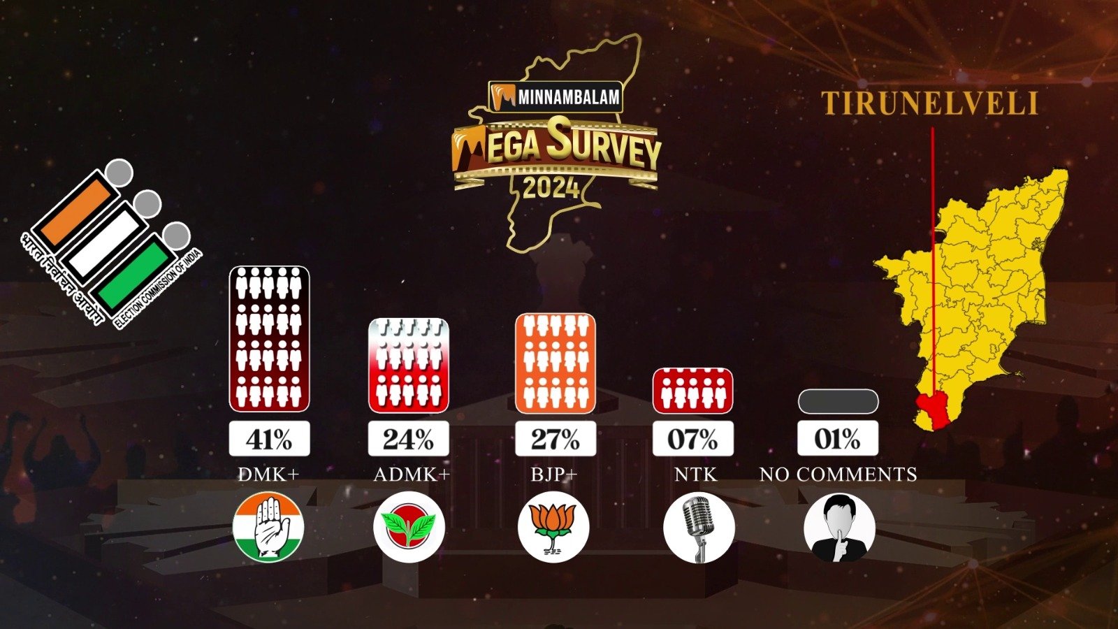 திருநெல்வேலி நாடாளுமன்றத் தொகுதியில் உள்ள 6 சட்டமன்றத் தொகுதிகளான ஆலங்குளம், திருநெல்வேலி, அம்பாசமுத்திரம், பாளையங்கோட்டை, நாங்குநேரி, இராதாபுரம் பகுதிகளில் நடத்தப்பட்ட கருத்துக்கணிப்பின் அடிப்படையில்