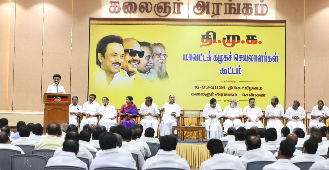 இந்தசூழலில் சென்னை அண்ணா அறிவாலயத்தில் இன்று (மார்ச் 16) திமுக மாவட்டச் செயலாளர்கள் கூட்டம் நடைபெற்றது. இதில் பொதுச்செயலாளர் துரைமுருகன் உள்ளிட்டோர் கலந்துகொண்டனர்.