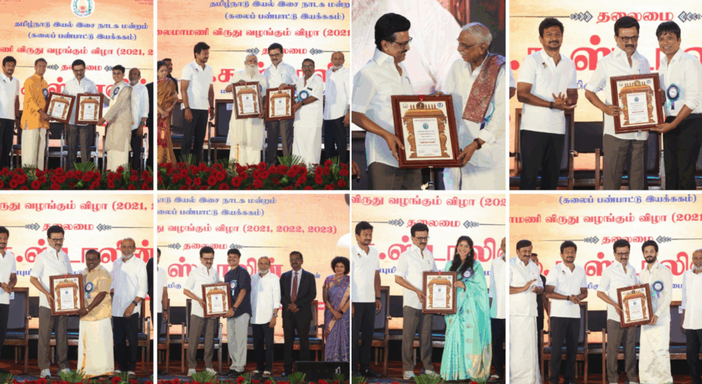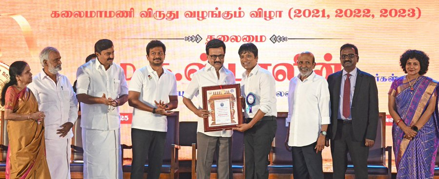 கடந்த 2021, 2022 மற்றும் 2023 ஆகிய 3 ஆண்டுகளுக்கான கலைமாமணி விருது தமிழ் திரையுலக பிரபலங்கள் மற்றும் நாட்டுப்புற கலைஞர்களுக்கு இன்று (அக்டோபர் 11) வழங்கப்பட்டது.