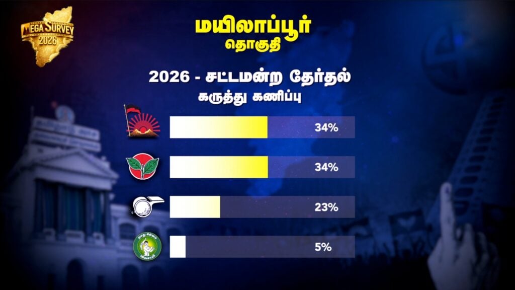 மயிலாப்புர் தொகுதியில் வேலுவுக்கும், தமிழிசை சவுந்தரராஜனுக்கும் கடும் போட்டி இருக்கும். தற்போது வரை சமநிலை நிலவுகிறது.