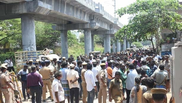 வழக்கை விசாரித்த கோர்ட்டு வீடுகளை அகற்ற உத்தரவிட்டது. கோர்ட்டு உத்தரவுப்படி அந்த வீடுகளை அகற்றுவதற்காக இன்று காலையில் 500க்கும் மேற்பட்ட போலீசார் மற்றும் வருவாய்த்துறை ஊழியர்கள் ஜே.சி.பி. இயந்திரங்கள் உடன் சென்றனர். சுமார் இருபது வீடுகளை மின்னல் வேகத்தில் இடித்தனர். அதை பார்த்ததும் நூற்றுக்கணக்கான பொதுமக்கள் அங்கு திரண்டு வீடுகளை இடிக்க விடாமல் போராட்டத்தில் ஈடுபட்டனர். பெண்கள் தலையில் அடித்து ஒப்பாரி வைத்தனர். ஜே.சி.பி. எந்திரத்தை நகர விடாமல் ரோட்டில் அமர்ந்திருந்தனர். இதனால் அதிகாரிகளால் வீடுகளை இடிக்க முடியவில்லை.