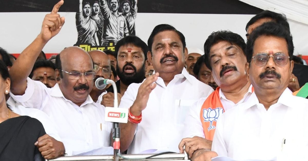 திமுக அரசின் நிர்வாகத் திறமையின்மை மற்றும் சீர்கெட்டு வரும் சட்டம் – ஒழுங்கைக் கண்டித்து, தேசிய ஜனநாயகக் கூட்டணி சார்பில் தமிழகம் முழுவதும் மாபெரும் கண்டன ஆர்ப்பாட்டம் இன்று (மார்ச் 17) நடைபெற்று வருகின்றன. சென்னை விருகம்பாக்கத்தில் நடைபெற்ற போராட்டத்தில் அதிமுக பொதுச்செயலாளர் எடப்பாடி பழனிசாமி கலந்துகொண்டு கண்டன உரையாற்றினார்.
