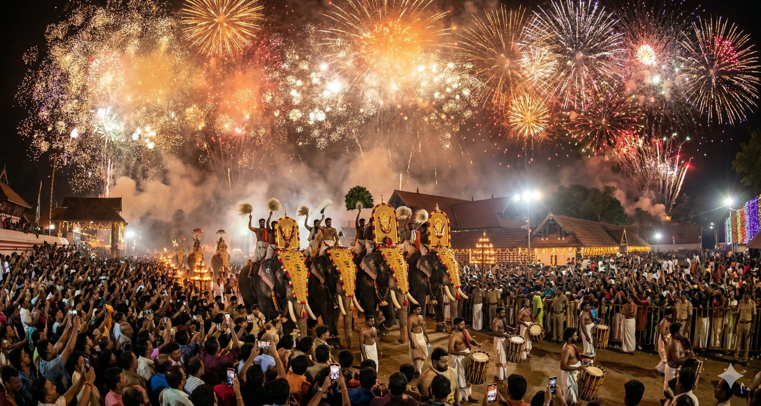 நென்மாரா மற்றும் வல்லங்கி ஆகிய இரு கிராமங்களுக்கு இடையே நிலவும் ஆரோக்கியமான போட்டியே இந்தத் திருவிழாவின் உயிர்நாடி. நெல்லிக்குளங்கரை பகவதி அம்மன் கோயில் திடலில் நடைபெற்ற வானவேடிக்கையின் போது, ஒட்டுமொத்த வானமும் சில நிமிடங்களுக்கு சிவப்பு மற்றும் தங்க நிறத்தில் ஜொலித்தது. “இது ஏதோ ஹாலிவுட் படத்தின் கிராபிக்ஸ் காட்சி போல இருக்கிறது” என்று நெட்டிசன்கள் வர்ணிக்கும் அளவுக்கு அந்தப் பிரம்மாண்டம் இருந்தது. ஆயிரக்கணக்கான பட்டாசுகள் ஒரே நேரத்தில் வெடித்துச் சிதறும்போது உருவான அந்த ஒளி வெள்ளம், அங்கிருந்த மக்களை மெய்சிலிர்க்க வைத்தது.