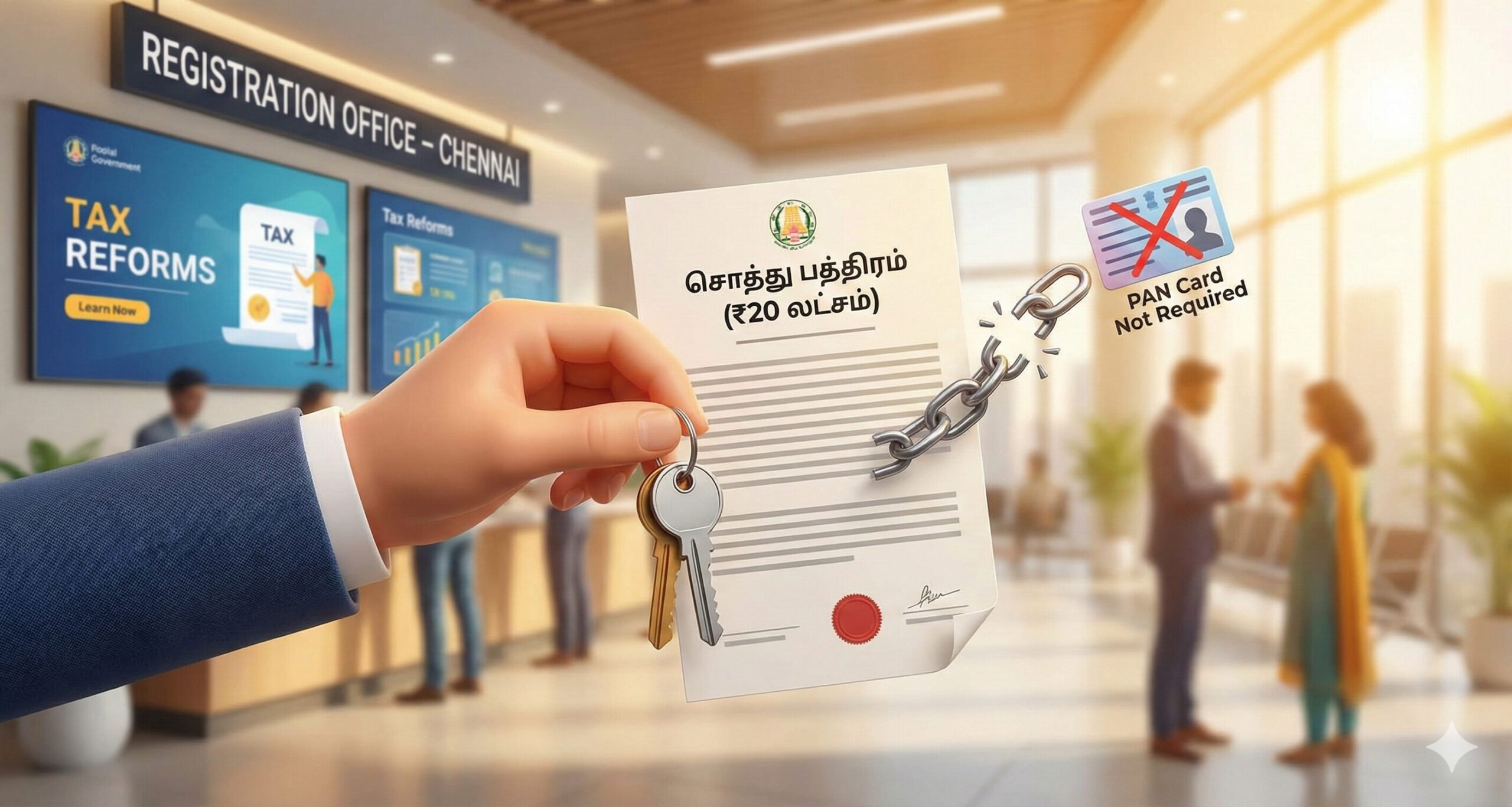 - அசையாச் சொத்துகள்: வீடு அல்லது நிலம் சார்ந்த பரிவர்த்தனைகள் ரூ. 20 லட்சத்தைத் தாண்டும்போது மட்டுமே பான் எண் தேவை. (முன்பு இது ரூ. 10 லட்சமாக இருந்தது).