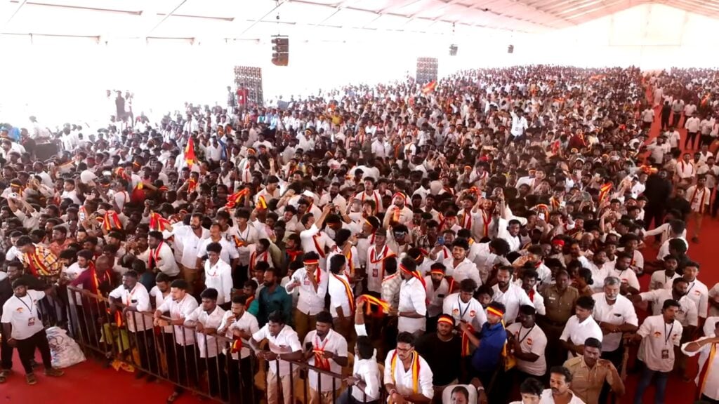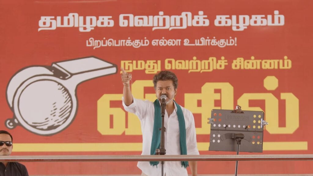 அதனால இந்த தமிழ், தமிழ், தமிழ்நாடு.. இன்னொன்னு வேற ஒன்னு சொல்றாங்க. அது என்னடான்னா, ‘தமிழ்நாடு அணி, டெல்லி அணி’-யா. கிரிக்கெட்ல கூட தமிழ்நாடு அணியை டெல்லி அணியால தொட்டுக்கூட பார்க்க முடியாது. அப்படி இருக்கும்போது.. கிரிக்கெட்லயும் விசில போடுறது தமிழ்நாடு தான் – சிஎஸ்கே! வரப்போற எலக்ஷன்லயும் விசில போடப்போறது நம்ம தமிழக வெற்றிக் கழகம் (TVK) தான்.