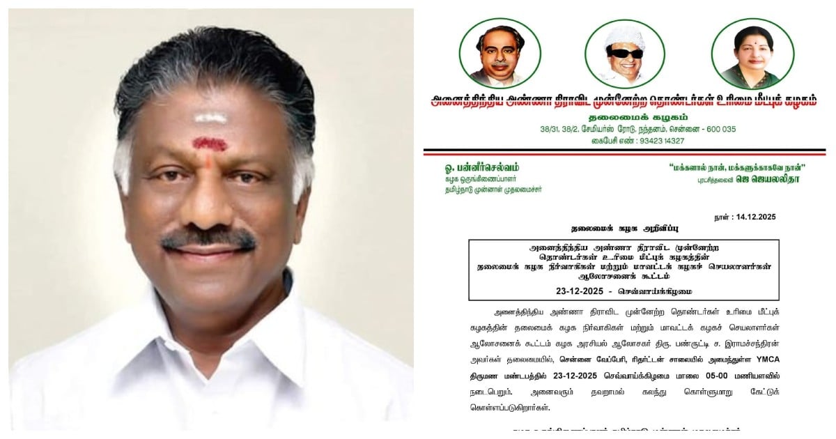 அதிமுக தொண்டர்கள் உரிமை மீட்பு கழகத்தின் ஆலோசனைக் கூட்டம் நாளை நடைபெறுவதாக இருந்தது; இந்த கூட்டம் டிசம்பர் 23-ந் தேதிக்கு ஒத்திவைக்கப்பட்டுள்ளது.