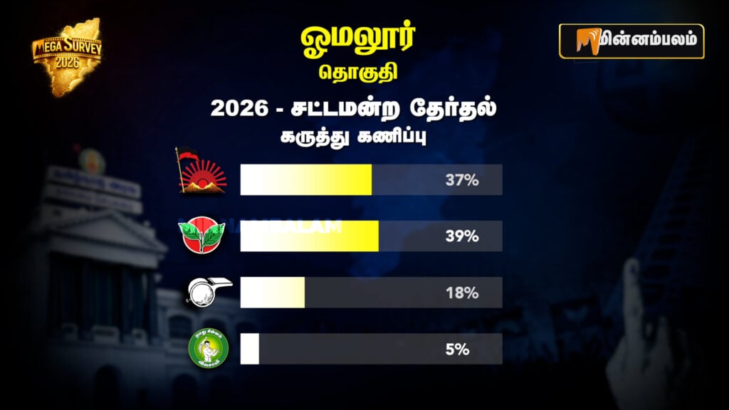 அதிமுக வேட்பாளர் மணி ஓமலூரில் மீண்டும் வெற்றி பெற வாய்ப்பிருக்கிறது.