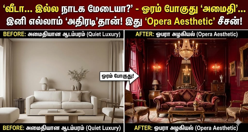 ஆனால், 2026-ல் மக்கள் இதற்கு ஒரு பெரிய ‘குட்-பை’ சொல்லிவிட்டார்கள். இப்போது இன்டீரியர் உலகில் டிரெண்டாகி வருவது – “ஓபரா அழகியல்” (Opera Aesthetic).