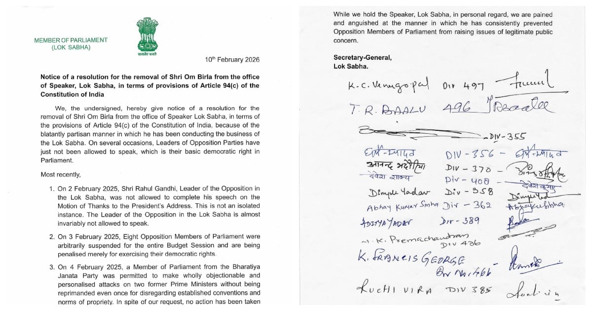 நாடாளுமன்ற மக்களவை சபாநாயகர் ஓம் பிர்லாவுக்கு எதிராக காங்கிரஸ் கட்சி சார்பில் நம்பிக்கை இல்லா தீர்மானம் சமர்ப்பிக்கப்பட்டுள்ளது.