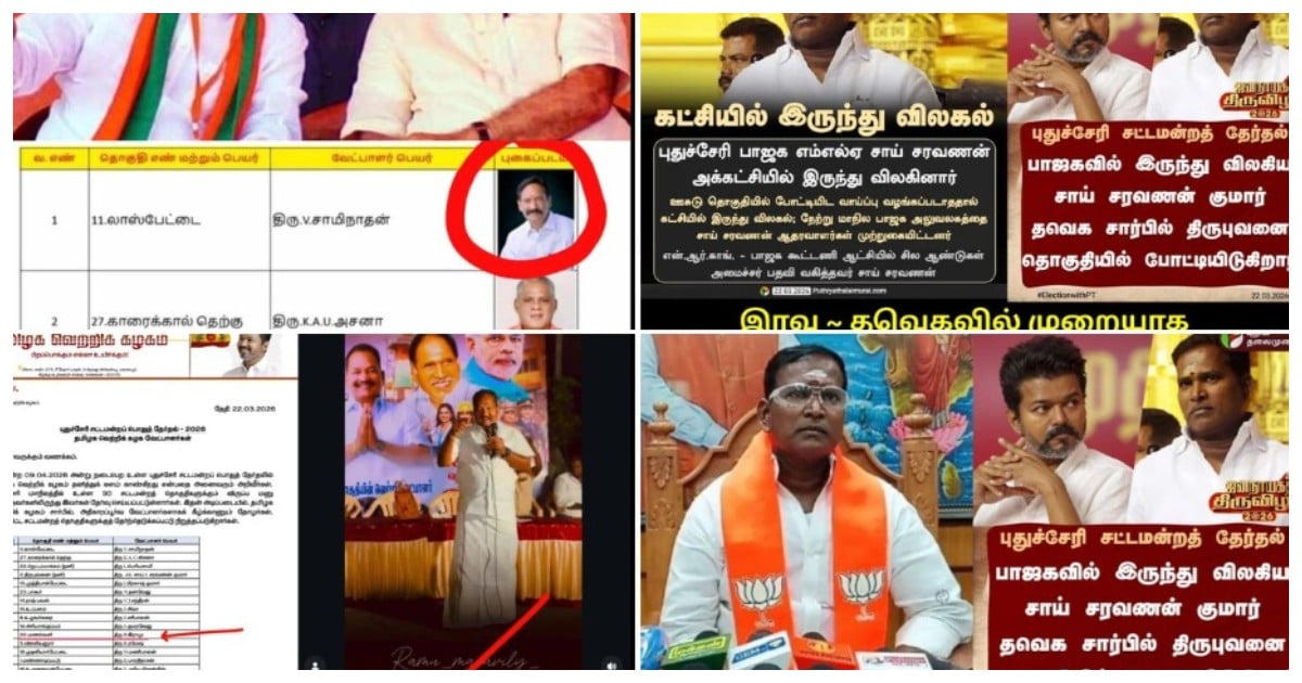தமிழக வெற்றிக் கழகத்தின் தலைவர் விஜய் நேற்று இரவு வெளியிட்ட 30 வேட்பாளர்களில் 2 பேர் சிட்டிங் எம்.எல்.ஏக்கள், 4 பேர் முன்னாள் எம்.எல்.ஏக்கள். தவெகவுக்கு கட்சி தாவியவர்களில் பலர் பாஜகவைச் சேர்ந்தவர்கள். முன்னாள் அமைச்சர் சாய் சரவணன் குமார், பாஜகவில் இருந்து விலகி நேற்றுதான் தவெகவில் இணைந்தார். அன்றே அவரும் வேட்பாளராக அறிவிக்கப்பட்டுவிட்டார். ஊசுடு தொகுதியில் அவர் களம் காண்கிறார். மணவெளி தொகுதி தவெக வேட்பாளர் ராமு, நேற்று முன்தினம் வரை பாஜகவில் இருந்தார்.. நேற்று இரவு தவெக வேட்பாளரானார். திரைப்பட காமெடி காட்சியில், ‘அரசியல்ல இதெல்லாம் சகஜமப்பா’ என கவுண்டமணி பேசும் வசனம் மெய்ப்பிக்கப்படுகிறது!
