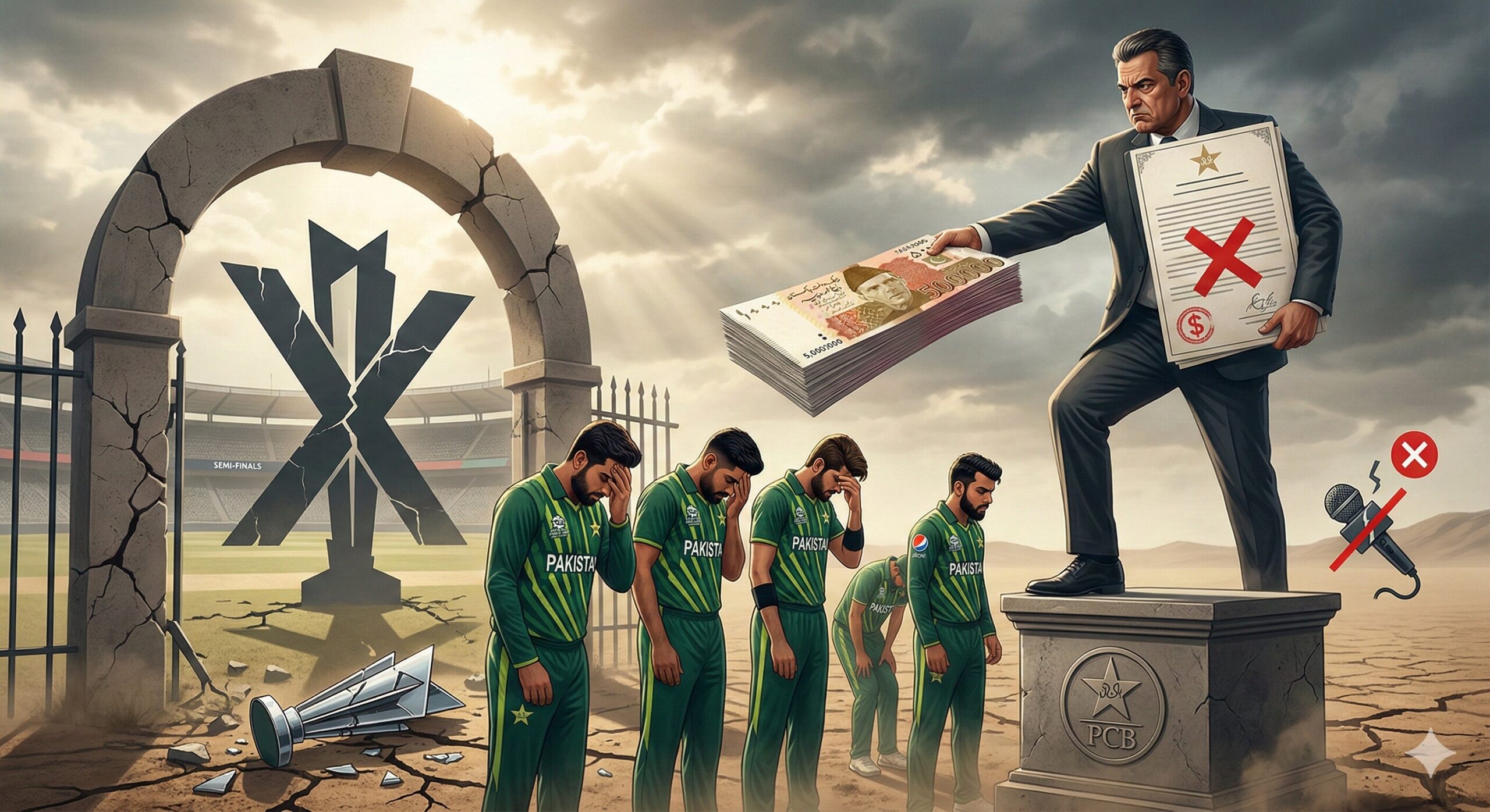 எதிர்பார்ப்புகள் ஏவுகணையாக எகிறும்போது, தோல்விகள் பாதாளத்தில் தள்ளுவது இயல்பு. ஆனால், அந்தத் தோல்விக்கு விலையாகச் சொந்த நாட்டு வாரியமே வீரர்களுக்கு அபராதம் விதிப்பது என்பது கிரிக்கெட் வரலாற்றில் ஒரு கசப்பான மருந்தாகப் பார்க்கப்படுகிறது. 2026 டி20 உலகக் கோப்பை (T20 World Cup 2026) தொடரில் பாகிஸ்தான் அணி அரையிறுதிக்குக் கூடத் தகுதி பெறாமல் வெளியேறியது அந்த நாட்டு ரசிகர்களை மட்டுமல்ல, அந்நாட்டு கிரிக்கெட் வாரியத்தையும் (PCB) கொதிப்படையச் செய்துள்ளது. “வெற்றி பெற்றால் பாராட்டு, தோற்றால் தண்டனை” என்ற புதிய கலாச்சாரத்தைப் பாகிஸ்தான் கிரிக்கெட் வாரியம் கையில் எடுத்துள்ளது.