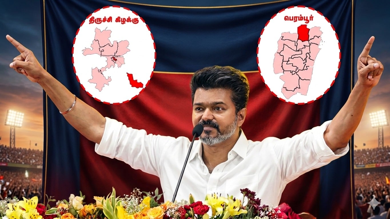 தவெக சார்பில் நடத்தப்பட்ட சர்வேயில் திருச்சி கிழக்கு, பெரம்பூர் ஆகிய தொகுதிகளில் எங்களுக்கு வெற்றி வாய்ப்பு அதிகமாக இருப்பதால், இந்த இரு தொகுதியும் விஜய் போட்டியிட டிக் செய்யப்பட்டது.
