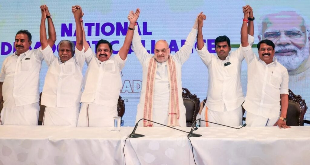 கடந்த சில ஆண்டுகளாக அகில இந்திய ஊடகங்களால் ஆற்றல் வாய்ந்த இளம் தலைவர் என்று கடுமையாக பிம்பக் கட்டமைப்பு செய்யப்பட்ட அண்ணாமலை பதவி விலகினார். புதிய தலைவருக்கு தேர்தல் என்று அறிவிக்கப்பட்டாலும், ஒருவருக்கு மேல் வேட்புமனு தாக்கல் செய்ய அனுமதிக்கபடாத நிலையில் உட்கட்சி ஜன நாயகத்தின் உன்னத உதாரணமாக நயினார் நாகேந்திரன் ஒருமனதாகத் தேர்ந்தெடுக்கப்பட்டார். இந்த செய்தி அவசரமாக உறுதி செய்யப்பட்டதும், எடப்பாடி பழனிசாமி அமித்ஷா தங்கியிருந்த நட்சத்திர ஹோட்டலுக்கு வர, அவரை அருகில் அமர வைத்துக்கொண்டு அமித்ஷா அ.இ.அ.தி.மு.க- பாஜக கூட்டணியை அறிவித்தார். எடப்பாடி பழனிசாமியைக் கூட்டணிக்குத் தலைமை தாங்கும்படி பணித்தார். Politics Behind the AIADMK-BJP Alliance