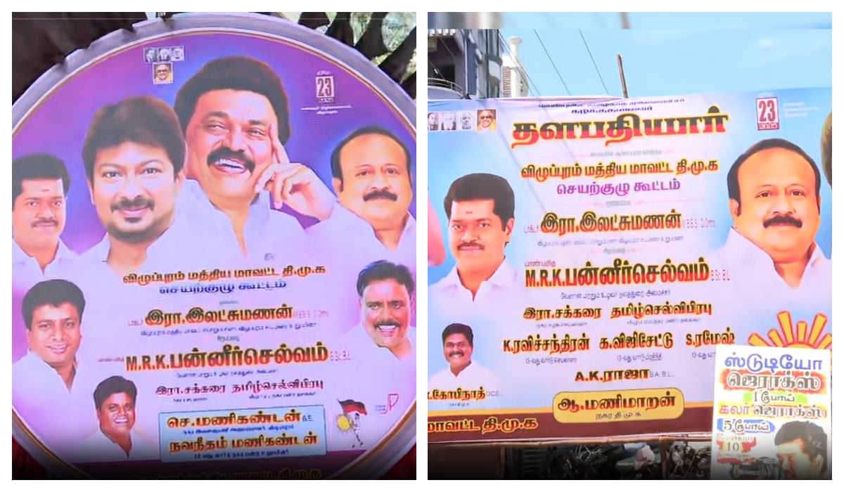 இதனையொட்டி, எம்.ஆர்.கே.பன்னீர் செல்வத்தை வரவேற்கும் விதமாக கலைஞர் அறிவாலயம் முன்பாக பேனர்கள் வைக்கப்பட்டுள்ளன. இதில் விழுப்புரம் மத்திய மாவட்ட பொறுப்பாளர் லட்சுமணன், அமைச்சர் எம்.ஆர்.கே படங்கள் மட்டுமே இடம்பெற்றுள்ளது. பொன்முடியின் படங்கள் புறக்கணிக்கப்பட்டுள்ளது.