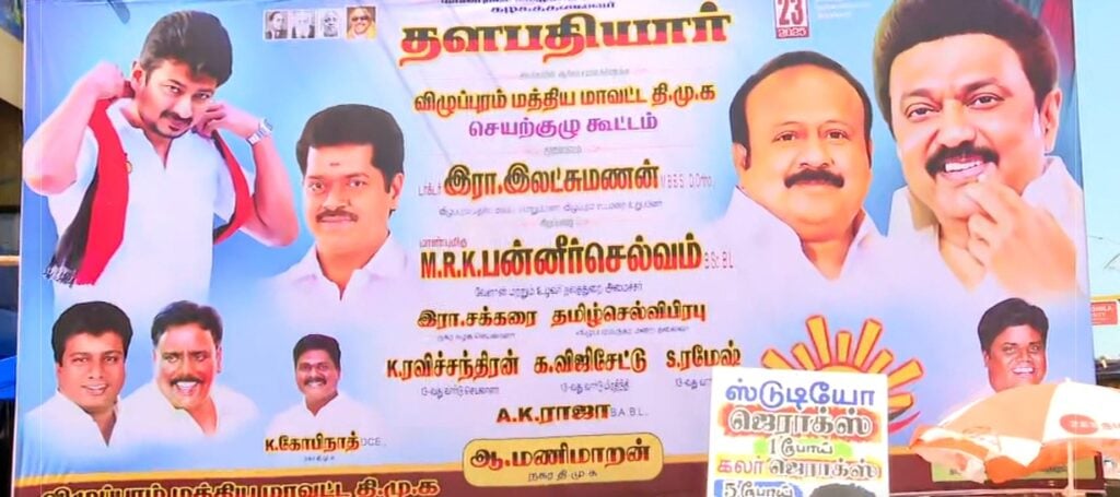 பொன்முடியின் மகன் கெளதம சிகாமணி மாவட்ட செயலாளராக இருக்கும் விழுப்புரம் தெற்கு மாவட்ட செயற்குழு கூட்டம் நேற்று (மே 22) எம்.ஆர்.கே.பன்னீர் செல்வம் தலைமையில் நடைபெற்றது. இதில் பொன்முடியின் படங்கள் இடம்பெற்றது என்பது குறிப்பிடத்தக்கது. Ponmudi photos boycott in villupuram dmk