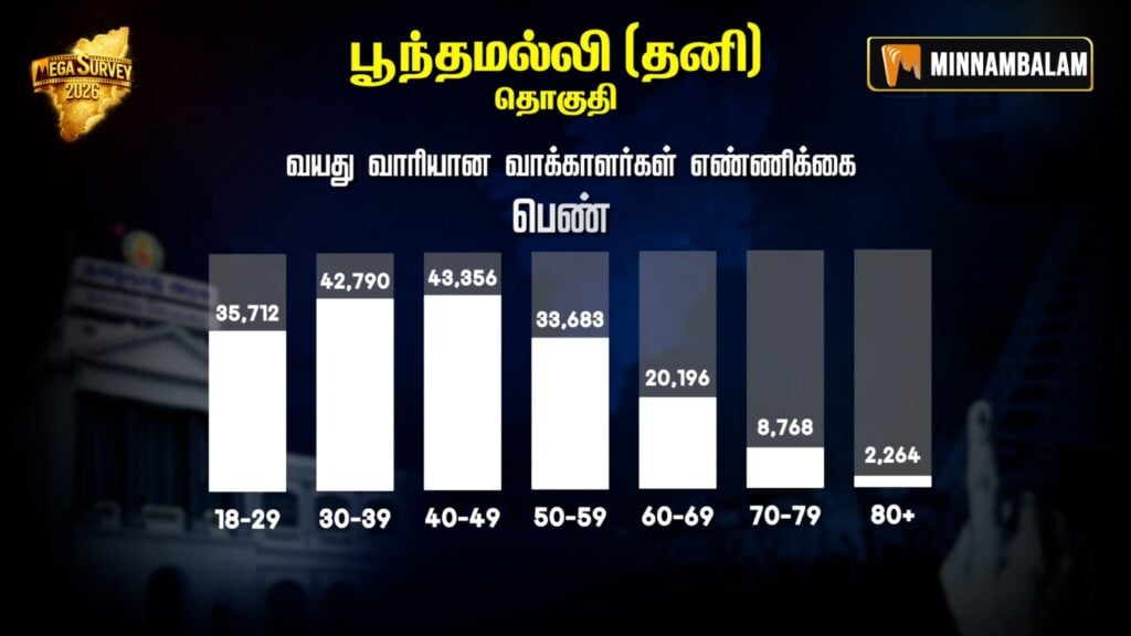 பூந்தமல்லி தனி தொகுதி.. போன டைம் 2021-ல் 2-வது முறையாக திமுகவின் கிருஷ்ணசாமி எம்.எல்.ஏ.வானார். இந்த முறையும் சிட்டிங் எம்.எல்.ஏ.வான கிருஷ்ணசாமி போட்டி போடுகிறார். அதிமுக கூட்டணியில் அமமுகவுக்கு ஒதுக்கப்பட்ட இந்த தொகுதியில் ஏழுமலை போட்டியிடுகிறார்.. இவர் 2016-ல் அதிமுக எம்.எல்.ஏ.வானார்.. பின்னர் தினகரன் அணிக்கு போய் பதவியை இழந்தார்.. அதனால் நடந்த 2019 தேர்தலில் 4-வது இடத்துக்கு தள்ளப்பட்டார் ஏழுமலை. அந்த தேர்தலில் கமல்ஹாசனின் மக்கள் நீதி மய்யம் 3-வது இடத்தில் இருந்தது. போன 2021- தேர்தலில் தேமுதிகவுடன் அமமுக கூட்டணி வைத்த போது இதே தொகுதியில டிஏ ஏழுமலை போட்டியிட்டு 5-வது இடத்துக்கு போனாரு.. அந்த தேர்தலில் வெறும் 8,805 ஓட்டுகள்தான் அவருக்கு கிடைச்சது.. 2021-ல் இந்த தொகுதியில திமுக ஜெயிச்சப்ப 2-வது இடம் பாமகவுக்கும் 3-வது இடம் நாம் தமிழர் கட்சிக்கும் 4-வது இடம் மநீமவுக்கும் கிடைச்சது. இப்ப கள நிலவரம் எப்படி இருக்குதுன்னா திமுக இந்த முறையும் நல்ல லீடிங்கில் இருக்கிறது.