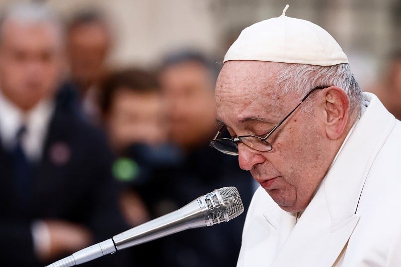 அதை தொடர்ந்து, உரையாற்றிய போப், உக்ரைன் மக்கள் அனுபவித்து வரும் துயரங்கள் குறித்து பேசும் போது திடீரென துயரம் தாளாமல் அமைதி ஆகி விட்டார். சில நொடிகளில் கண்ணீர் விட்டு அழுதார்.