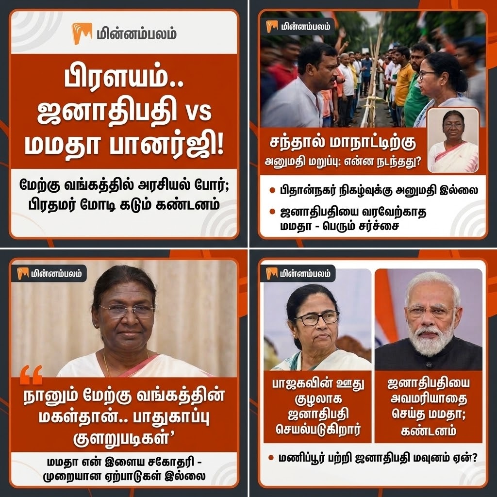 ஜனாதிபதி திரவுபதி முர்மு, மேற்கு வங்க மாநில முதல்வர் மமதா பானர்ஜிக்கு பகிரங்கமாக கண்டனம் தெரிவித்துள்ளது அரசியல் அரங்கில் பெரும் பரபரப்பை ஏற்படுத்தி உள்ளது.