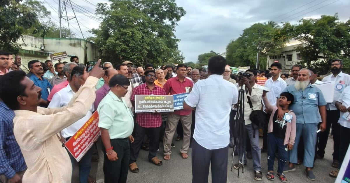 கோவை தெற்கு வட்டாட்சியர் அலுவலகம் முன்பாக இன்று (அக்டோபர் 22) மாலை மறுமலர்ச்சி மக்கள் இயக்கம் சார்பில் ஆர்ப்பாட்டம் நடைபெற்ற நிலையில் தமிழக அரசு தனியார் பல்கலை கழக திருத்த சட்டத்தை கொண்டு வந்து சமூக நீதிக்கு எதிரான மாபெரும் குற்றத்தை செய்து இருக்கிறது என குற்றம் சாட்டினர்.