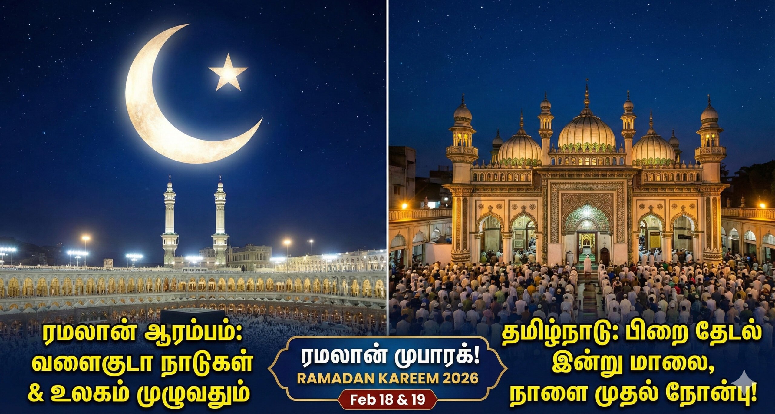 - தாராவித் தொழுகை: இன்று இரவு பிறை உறுதியானால், பள்ளிவாசல்களில் சிறப்புத் தொழுகையான ‘தாராவி’ (Taraweeh) இன்று இரவே தொடங்கிவிடும். “அதனால இன்னைக்கு நைட் உங்க ஊர் பள்ளிவாசல்கள்ல லைட் எல்லாம் எரியுறதைப் பார்த்தா, நோன்பு கன்பார்ம்னு தெரிஞ்சுக்கோங்க பாஸ்!”