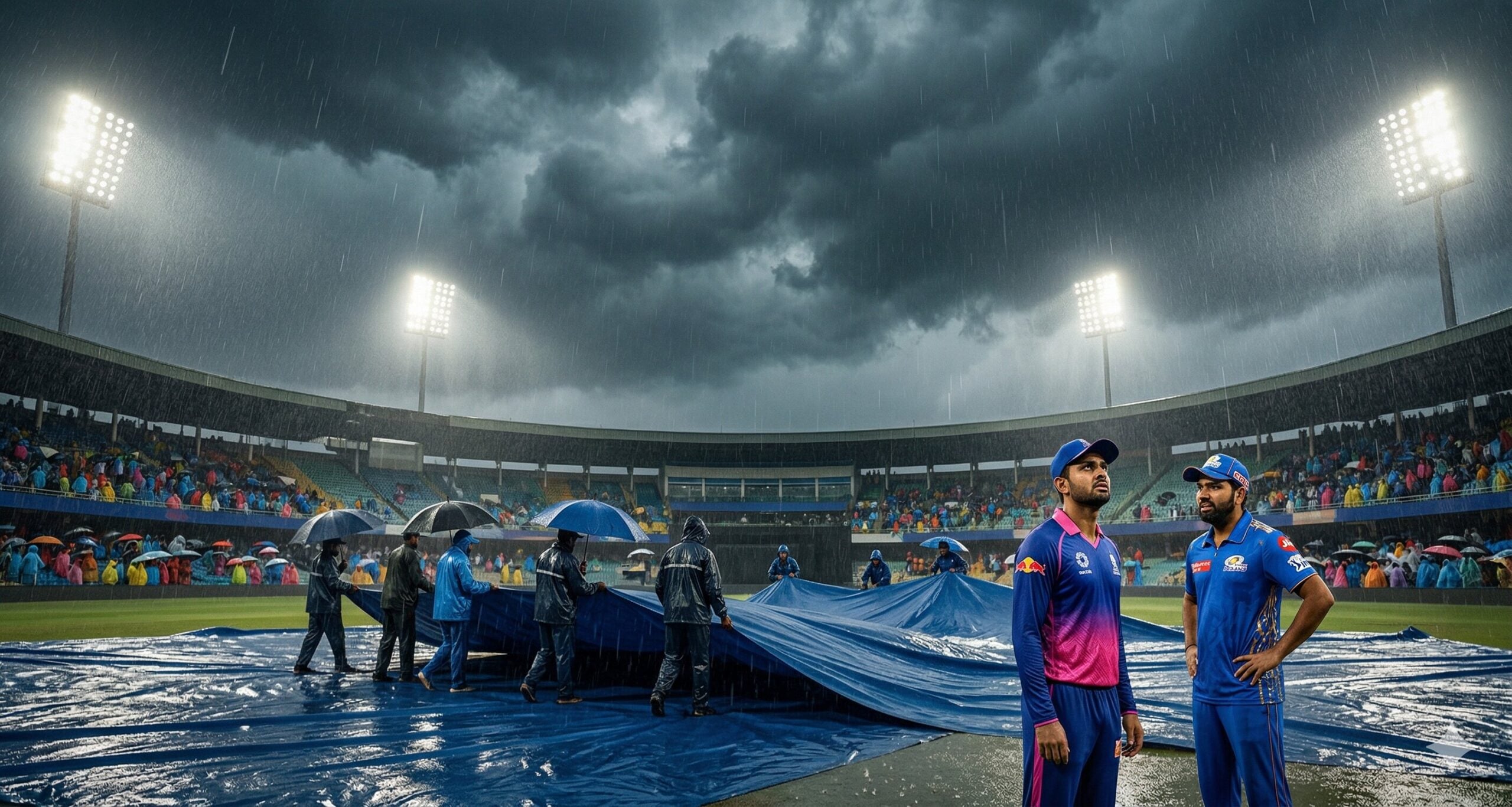 கிரிக்கெட் என்பது இந்தியாவில் வெறும் விளையாட்டு மட்டுமல்ல, அது ஒரு உணர்வு. அந்த உணர்வின் உச்சகட்டமான IPL 2026 திருவிழா தற்போது களைகட்டியுள்ளது. இன்று ஏப்ரல் 7, செவ்வாய்க்கிழமை, குவஹாட்டியில் உள்ள ACA பர்சாபாரா ஸ்டேடியம் ஒரு மாபெரும் போர்க்களமாக மாறத் தயாராக இருந்தது. ஒருபுறம் ஹாட்ரிக் வெற்றியை நோக்கிப் பாயும் ராஜஸ்தான் ராயல்ஸ், மறுபுறம் இழந்த பெருமையை மீட்கத் துடிக்கும் மும்பை இண்டியன்ஸ். ஆனால், ஆட்டம் தொடங்குவதற்கு முன்பே ‘வருண பகவான்’ தனது குறுக்கீட்டைத் தொடங்கி ரசிகர்களைச் சோதனையில் ஆழ்த்தியுள்ளார்.