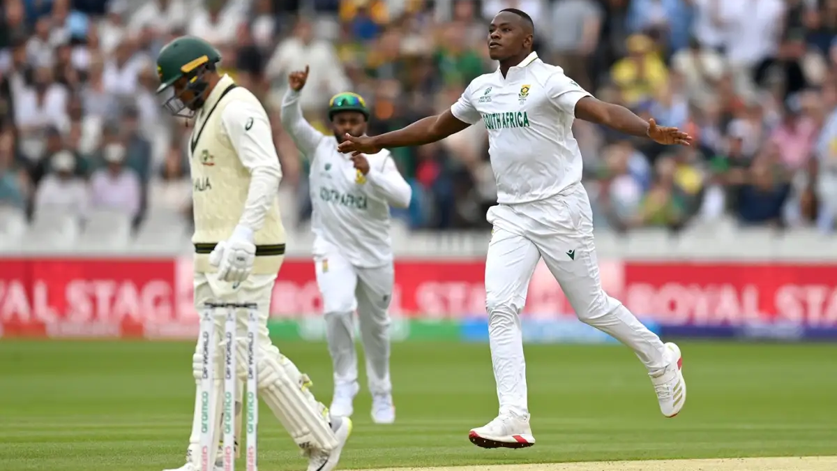 தென்னாப்பிரிக்கா அணியின் வேகப்பந்துவீச்சை எதிர்கொள்ள முடியாமல் ஆஸ்திரேலியா அணி 212 ரன்களுக்கு ஆல் அவுட் ஆனது. குறிப்பாக கடைசி 5 விக்கெட்டுளை வெறும் 5.4 ஓவர்களில் இழந்தது. sa rabada gets fifer and trash aus in wtc final