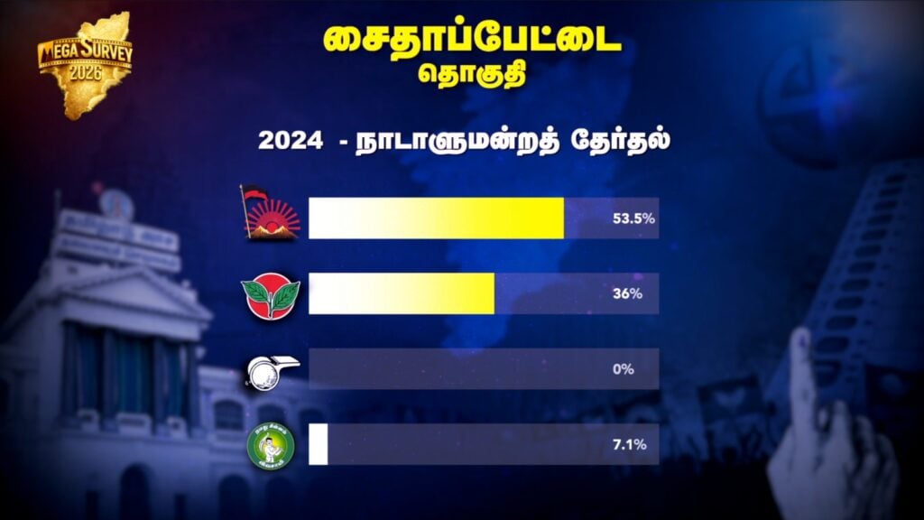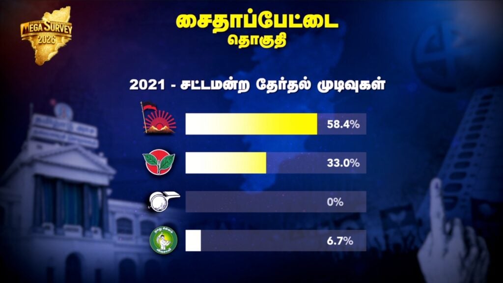 சைதாப்பேட்டை சட்டப்பேரவை தொகுதியில் மீண்டும் அமைச்சர் மா.சுப்பிரமணியன் வெற்றி பெற வாய்ப்பிருக்கிறது.