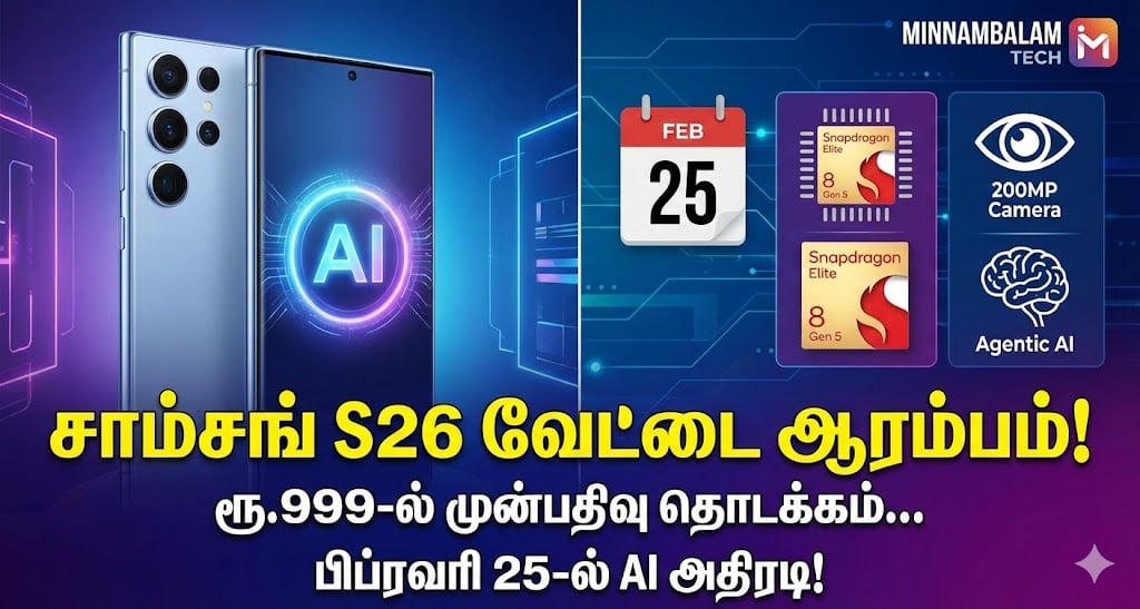 அன்பேக்ட் 2026 (Unpacked 2026): சாம்சங்கின் மெகா நிகழ்ச்சியான ‘கேலக்ஸி அன்பேக்ட்’ (Galaxy Unpacked) வரும் பிப்ரவரி 25, 2026 அன்று அமெரிக்காவின் சான் பிரான்சிஸ்கோவில் நடைபெறவுள்ளது. இந்த நிகழ்ச்சியில்தான் கேலக்ஸி S26, S26 பிளஸ் மற்றும் S26 அல்ட்ரா மாடல்கள் அறிமுகமாகவுள்ளன.