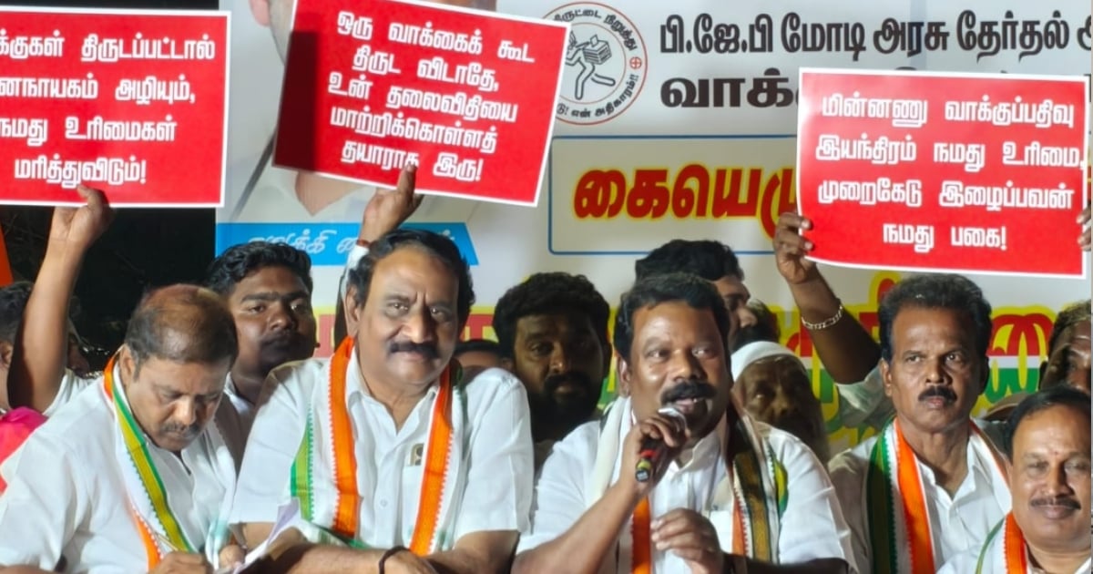 “இன்று வாக்குத் திருடனே பதவி விலகு என்ற முழக்கத்தோடு வாக்குத் திருட்டை தடுக்க வேண்டும், வாக்கு திருடியவர்கள் பதவி விலக வேண்டும் என கோவையில் கையெழுத்து இயக்கம் நடத்தப்படுகிறது.