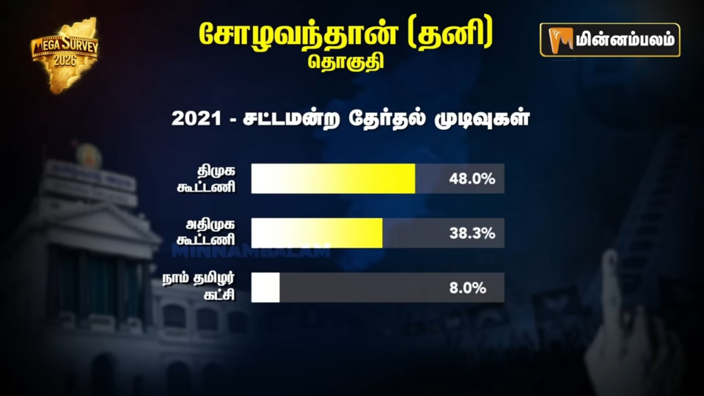 சோழவந்தான் தொகுதி… திமுகவும் அதிமுகவும் மாறி மாறி ஜெயிக்கிற தொகுதி.. 2021-ல் திமுகவின் வெங்கடேசன் ஜெயிச்சிருந்தாரு. இந்த முறையும் சிட்டிங் எம்.எல்.ஏ. வெங்கடேசன் களம் காண்கிறார்.