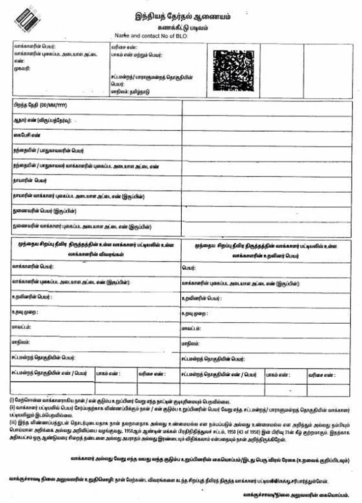தமிழ்நாட்டில் துவங்கியுள்ள தீவிர சிறப்புத் திருத்தத்திலும் பல முரண்பாடுகள் தோன்றியுள்ளன. மக்கள் பெரும் குழப்பமடைந்துள்ளார்கள். ஒருவரது பெயர் வாக்காளர் பட்டியலில் உள்ளது. அவர் புகைப்படத்துடன் கூடிய படிவத்தைத்தான் BLO எனப்படும் வாக்குச்சாவடி முகவர்கள் தருகிறார்கள். வீட்டுக்கு வந்து தருகிறார்கள்; அல்லது பொது இட த்திற்கு வந்து பெற்றுக் கொள்ளச் சொல்கிறார்கள்.
